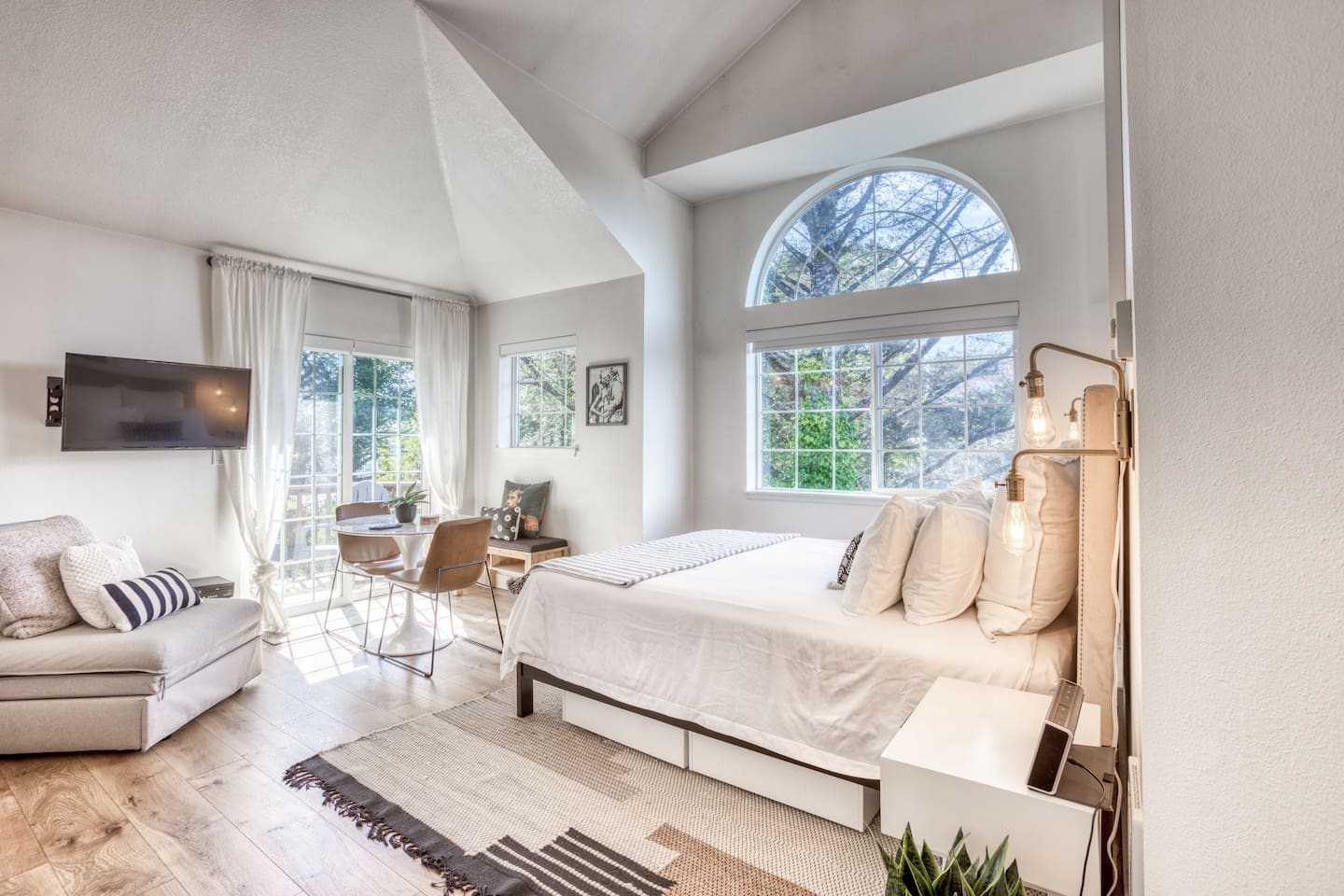Another minimalist option is this quaint Airbnb in Eugene, Oregon. Its southeastern location isn’t far from the University of Oregon and Downtown Eugene, with plenty of restaurants and health clubs nearby.