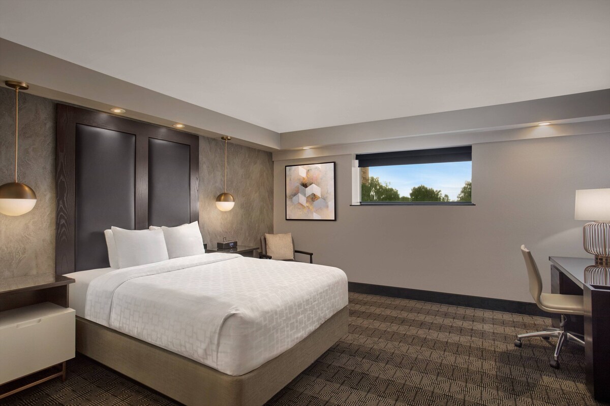The hotel features a modern motif with an on-site steakhouse restaurant and a rooftop lounge overlooking the city. Guests can play a game of billiards or head to the fitness center to get in a good workout. The property also features a business center and paid on-site parking.